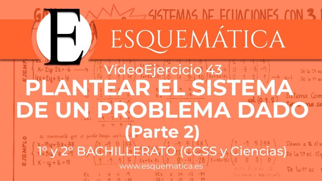 YT – VIDEOEJERCICIO: Plantear el sistema de un problema dado (2a parte)
